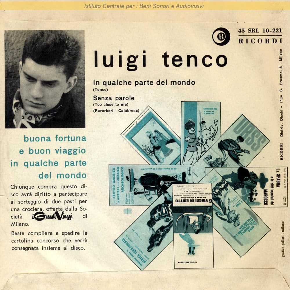Note: Data matrici: 1 Dicembre 1961-27 Gennaio 1961 / "Senza parole" in nuova registrazione rispetto alla precedente del 1959 (cfr. EP "I CAVALIERI VOL. 1") / In allegato una cartolina postale con indirizzo prestampato diretta all'artista (vedi link "Altre immagini") / Distribuito da Dischi Ricordi - Milano