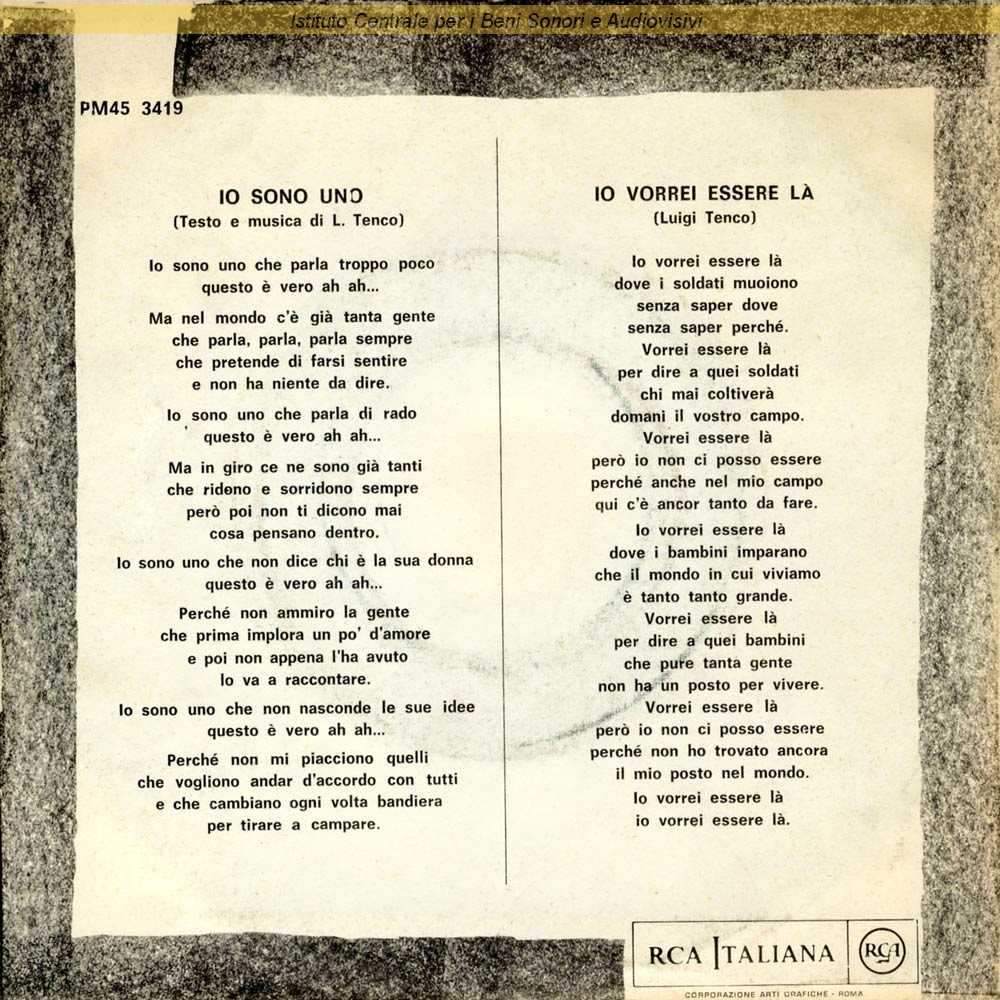 : Sul retro di copertina i testi delle due canzoni / Distribuito da RCA Italiana - Roma