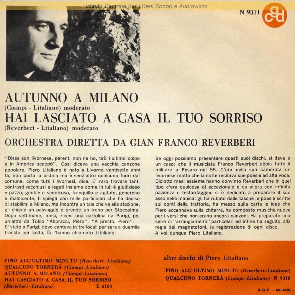 : Data matrici: 23 Ottobre / Inciso come Piero Litaliano / Sul retro di copertina una nota di presentazione dell'artista non firmata