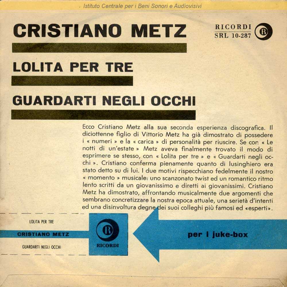 : Data matrici: 12 Ottobre / Sul retro di copertina breve presentazione non firmata dell'artista e del disco / Distribuito da Dischi Ricordi - Milano