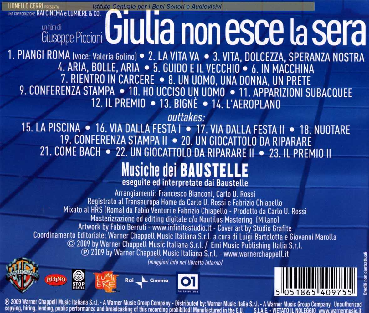 Interpreti: Baustelle, Valeria Golino Autori: Francesco Bianconi Musicisti: Rachele Bastreghi (percussioni) , Rachele Bastreghi (vibrafono) , Francesco Bianconi (programmazione) , Francesco Bianconi (voce) , Mario Castellani (*) (viola) , Saskia Giorgini (pianoforte) , Valeria Golino (voce) , Alessandro Maiorino (basso elettrico) , Nicola Manzan (violino) , Gianfranco Marchesi (trombone) , Claudio Pasceri (violoncello) , Francesco Punturo (violino) , Carlo Ubaldo Rossi (programmazione) , Carlo Ubaldo Rossi (batteria)