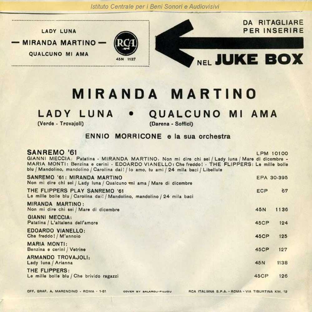: Lato A: "Festival di Sanremo 1961" / Copertina di Ferruccio Piludu e Sergio Salaroli / Distribuito da RCA Italiana - Roma