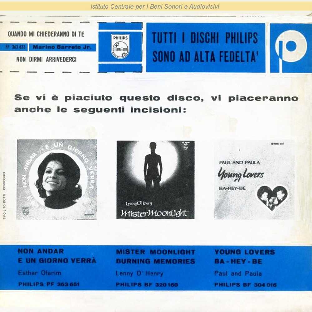 QUANDO MI CHIEDERANNO DI TE/NON DIRMI ARRIVEDERCI