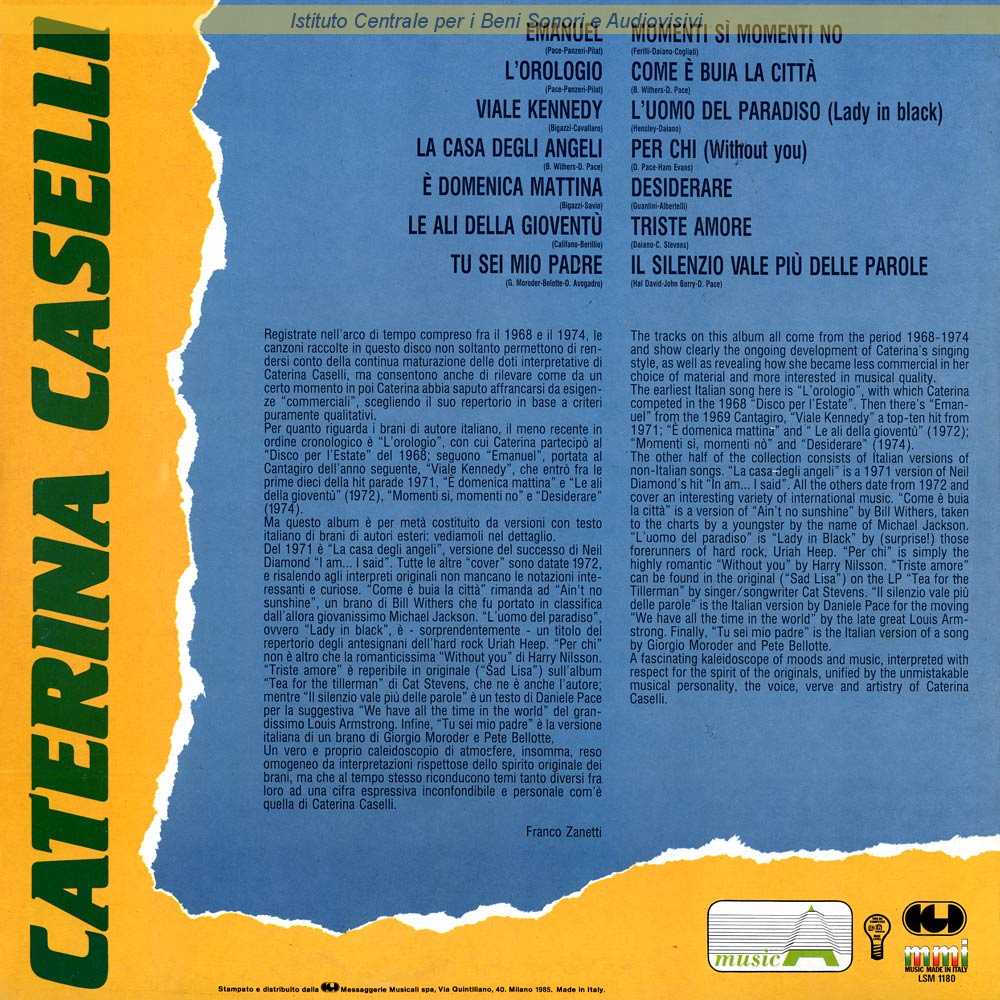Autori: Daniele Pace, Bill Withers Produttori: Giancarlo Lucariello Orchestra: Franco Monaldi
