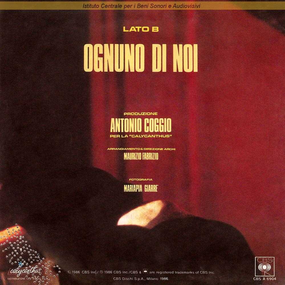 : Lato A: "Festival di Sanremo 1986" / Fotografia di Maria Pia Giarré / Distribuito da CBS Dischi - Milano
