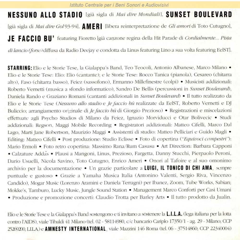 Autori: Stefano Belisari, Davide Civaschi, Sergio Conforti, Nicola Fasani Arrangiatori: DJ Buliccio, Elio e le Storie Tese, Roberto Vernetti