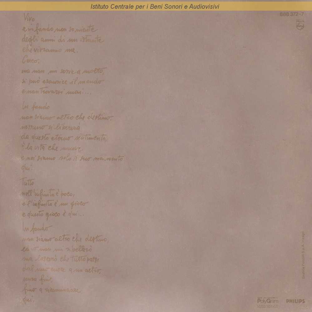 : Testo della canzone sul retro di copertina / Distribuito da PolyGram Dischi - Milano
