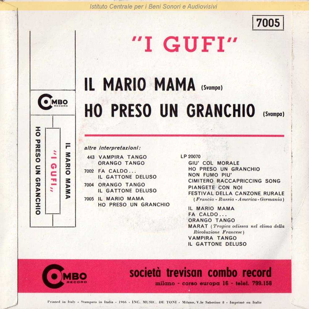 : Data matrici: 5 Gennaio / Formazione: Roberto Brivio - chitarra, fisarmonica, voce; Gianni Magni - voce; Lino Patruno - chitarra, banjo, contrabbasso, voce; Nanni Svampa - chitarra, pianoforte, voce