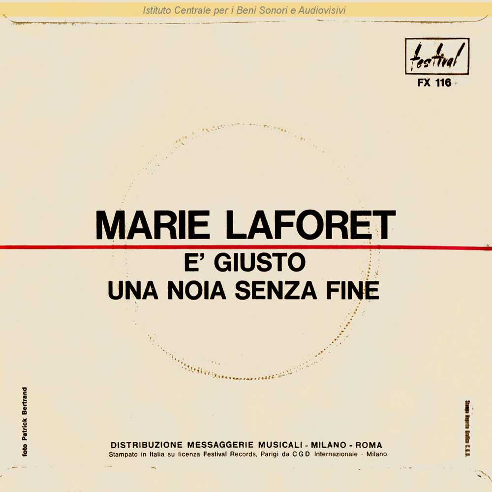 : Data matrici: 10 Febbraio / Fotografia di Patrick Bertrand / Marie Laforet è il nome d'arte di Maïténa Marie Brigitte Douménach - Ciro Dansotti è lo pseudonimo di Sandro Ciotti / Distribuito da Messaggerie Musicali - Milano
