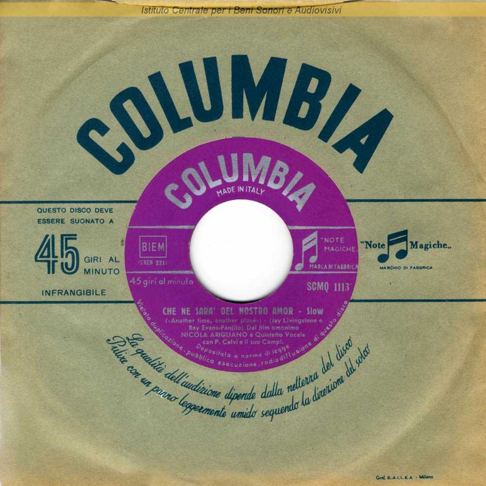 : Data matrici: 6 Giugno-12 Giugno / Lato B: sigla della rubrica televisiva "Luci dello schermo"