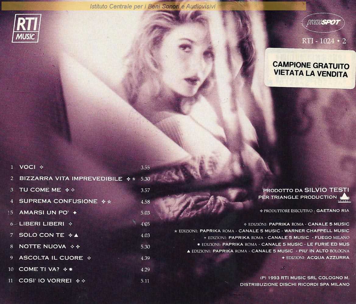 Autori: Fabrizio Berlincioni, V. Chiaravalle, Giacomo Esposito, Silvio Testi Arrangiatori: Danilo Cherni, Maurizio Perfetto, Fabio Pignatelli Musicisti: Amedeo Bianchi (sax) , Marilù Monreale (cori) , Maurizio Perfetto (chitarre) , Simona Pirone (cori) , Claudio Pizzale (cori) , Vincent Thoma (cori) Edizioni: Canale 5 Music , Paprika