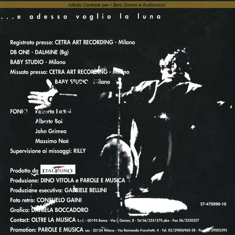 Autori: Luigi Albertelli, Vincenzo Malepasso Musicisti: Marina Balestrieri (cori) , Moreno Ferrara (cori) , Lalla Francia (cori) , Pete La Pietra (chitarra) , Pier Michelatti (basso) , Stefano Re (batteria) , Rilly (computer) , Luca Savazzi (tastiere) Edizioni: Durium