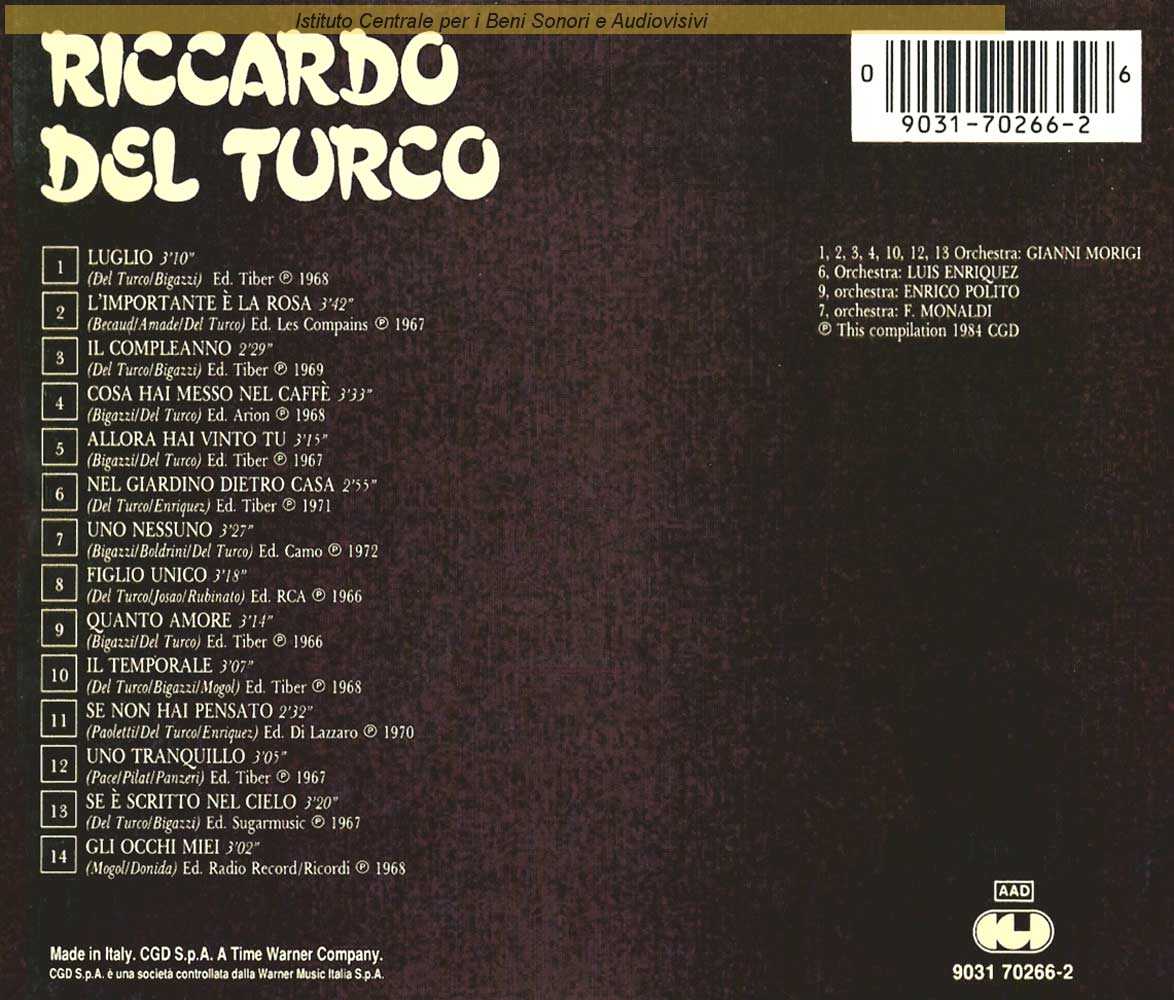 Autori: Luis Enriquez Bacalov, Riccardo Del Turco Orchestra: Luis Enriquez Bacalov Edizioni: Tiber