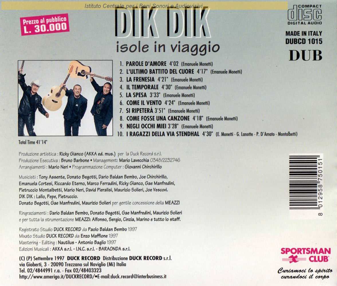 Autori: Emanuele Monetti Musicisti: Dario Baldan Bembo (organo Hammond) , Riccardo Eterno (coro) , Marco Ferradini (coro)