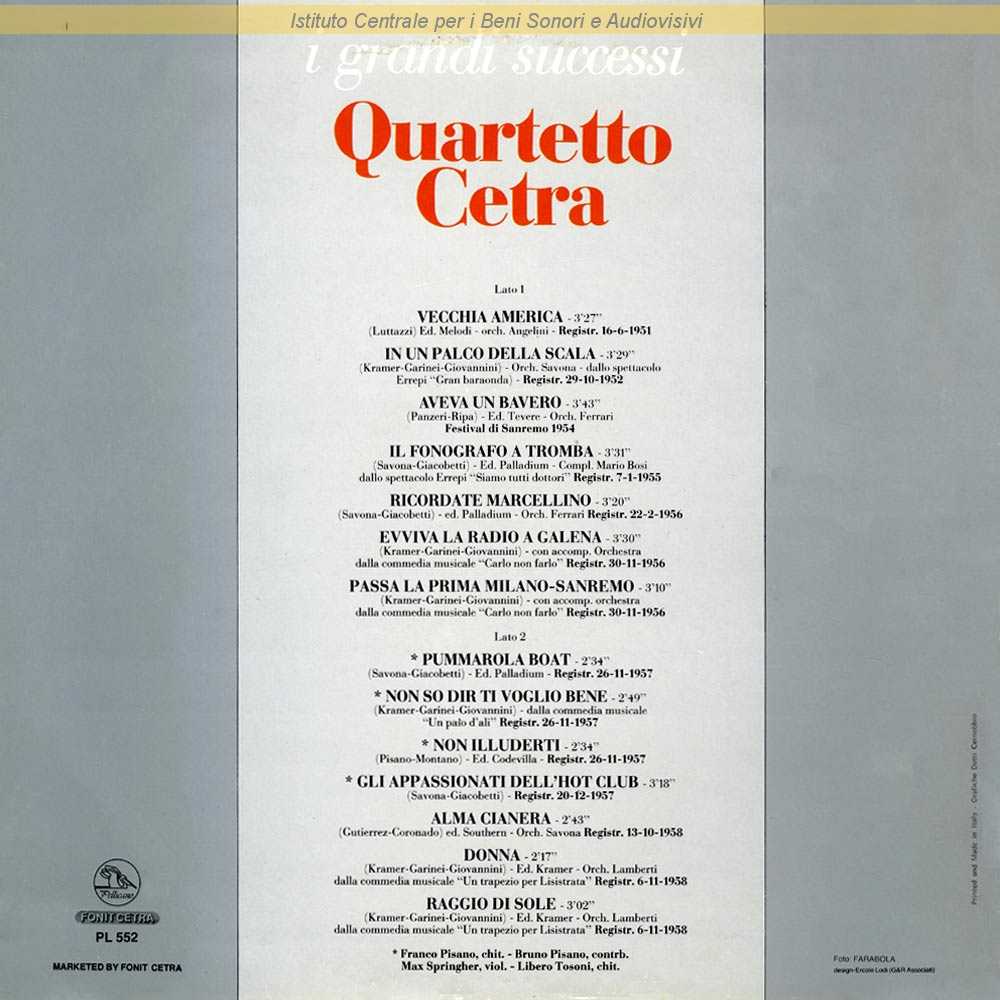 Autori: Tata Giacobetti, Virgilio Savona Musicisti: Berto Pisano (contrabbasso) , Franco Pisano (chitarra) , Max Springher (violino) , Libero Tosoni (chitarra)