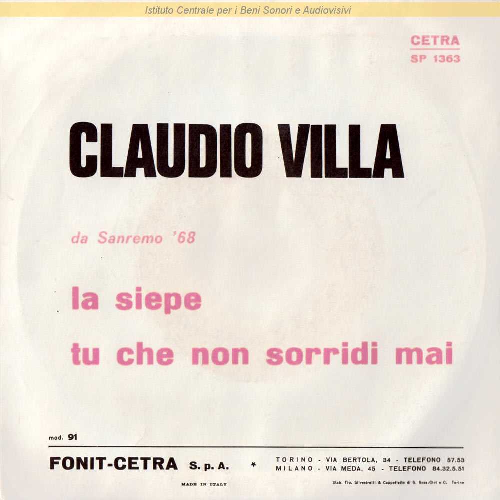 : Data matrici: 8 Febbraio-29 Gennaio / Distribuito da Fonit Cetra - Torino