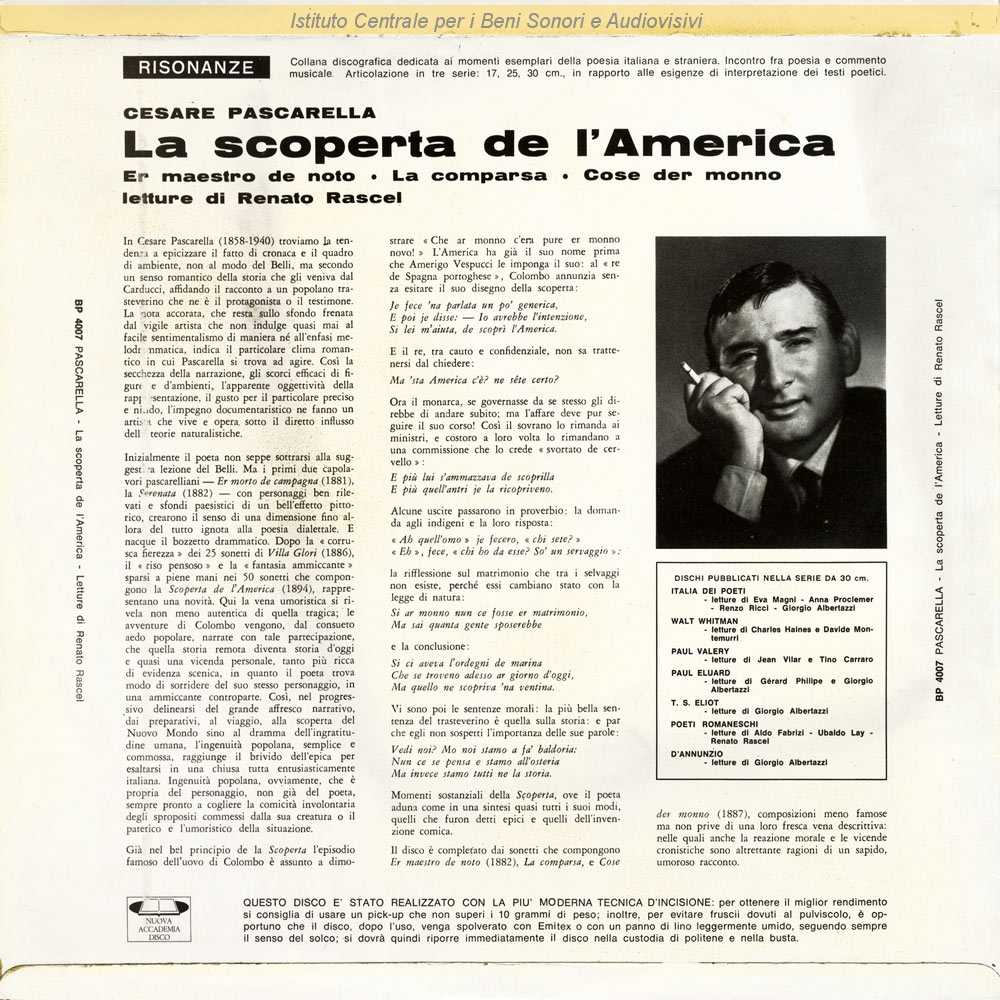 : Letture di Renato Rascel / Collana Risonanze dedicata ai momenti esemplari della poesia italiana e straniera / In copertina un'illustrazione di G. Sarno - Sul retro di copertina una lunga presentazione del disco non firmata