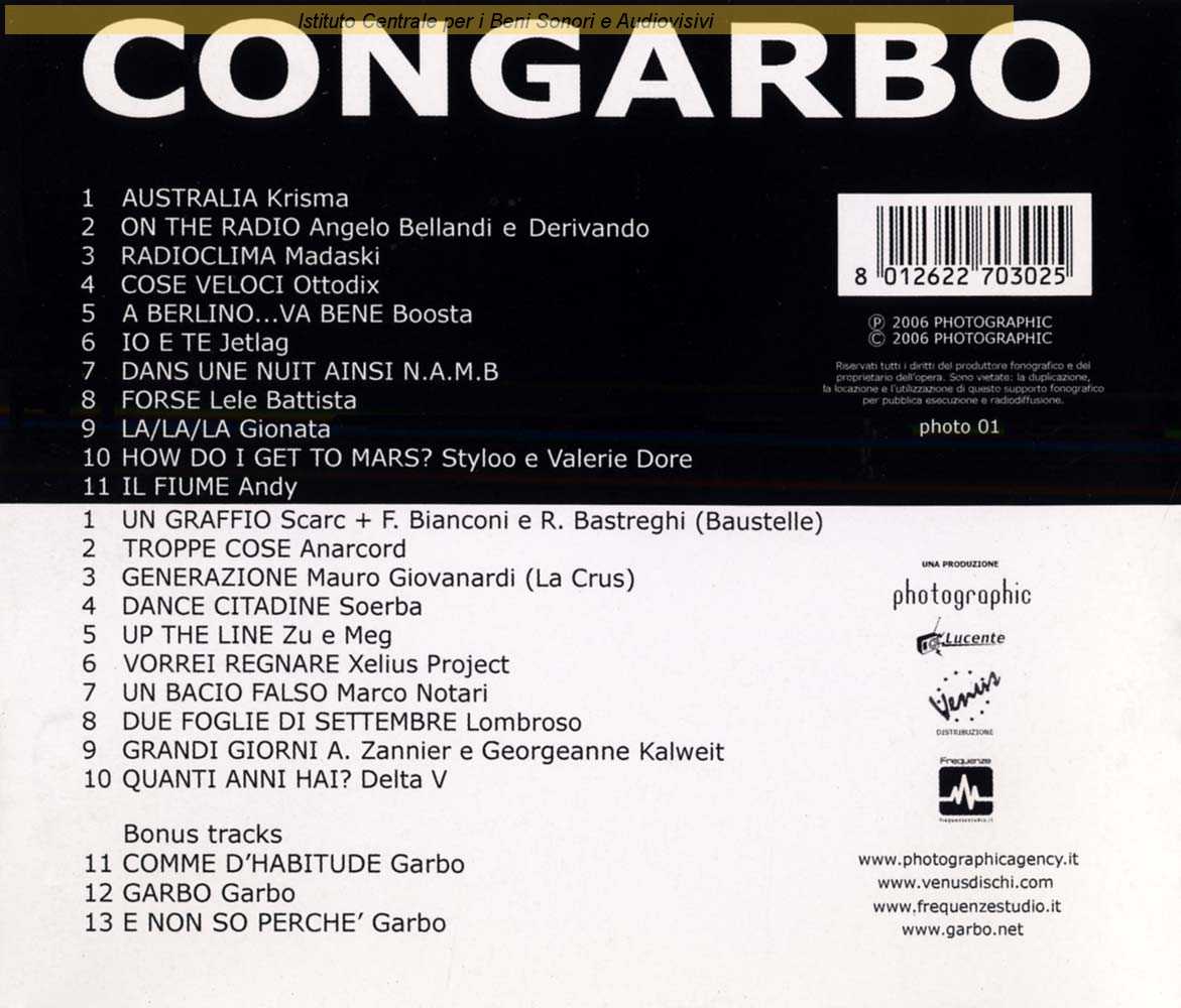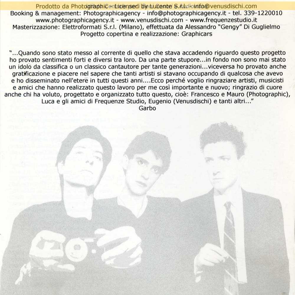 Interpreti: Andy Autori: Garbo Produttori: Andy Musicisti: Stefano Floriello (batteria) , Vincenzo Messina (piano Rhodes) , Luca Scansani (basso) , Tibe (chitarre)
