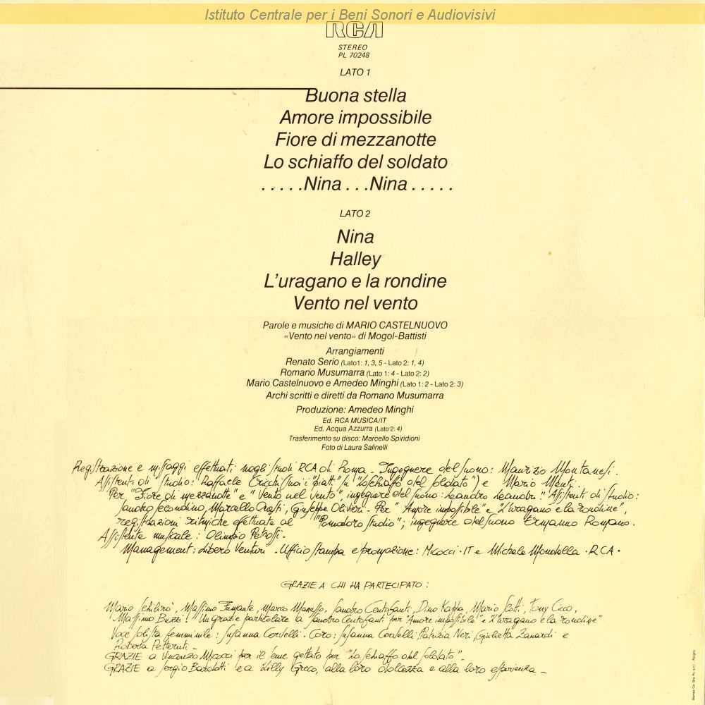 Autori: Mario Castelnuovo Arrangiatori: Mario Castelnuovo, Amedeo Minghi