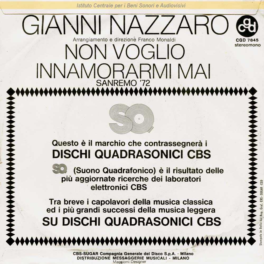 : Lato A: "Festival di Sanremo 1972" / Grafica di Piera Maggioni / Distribuito da Messaggerie Musicali - Milano