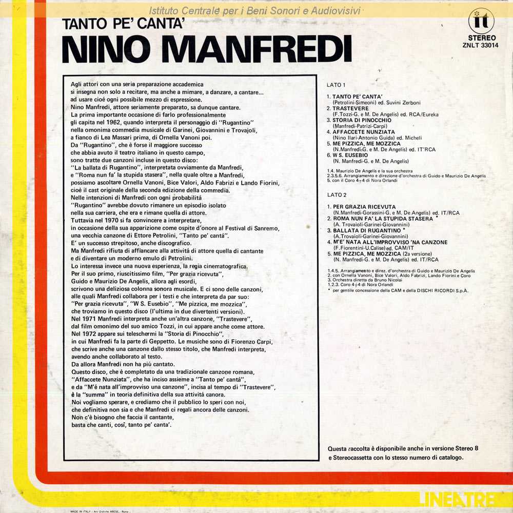 Autori: Maurizio De Angelis, Nino Manfredi Orchestra: Guido e Maurizio De Angelis Edizioni: RCA , IT