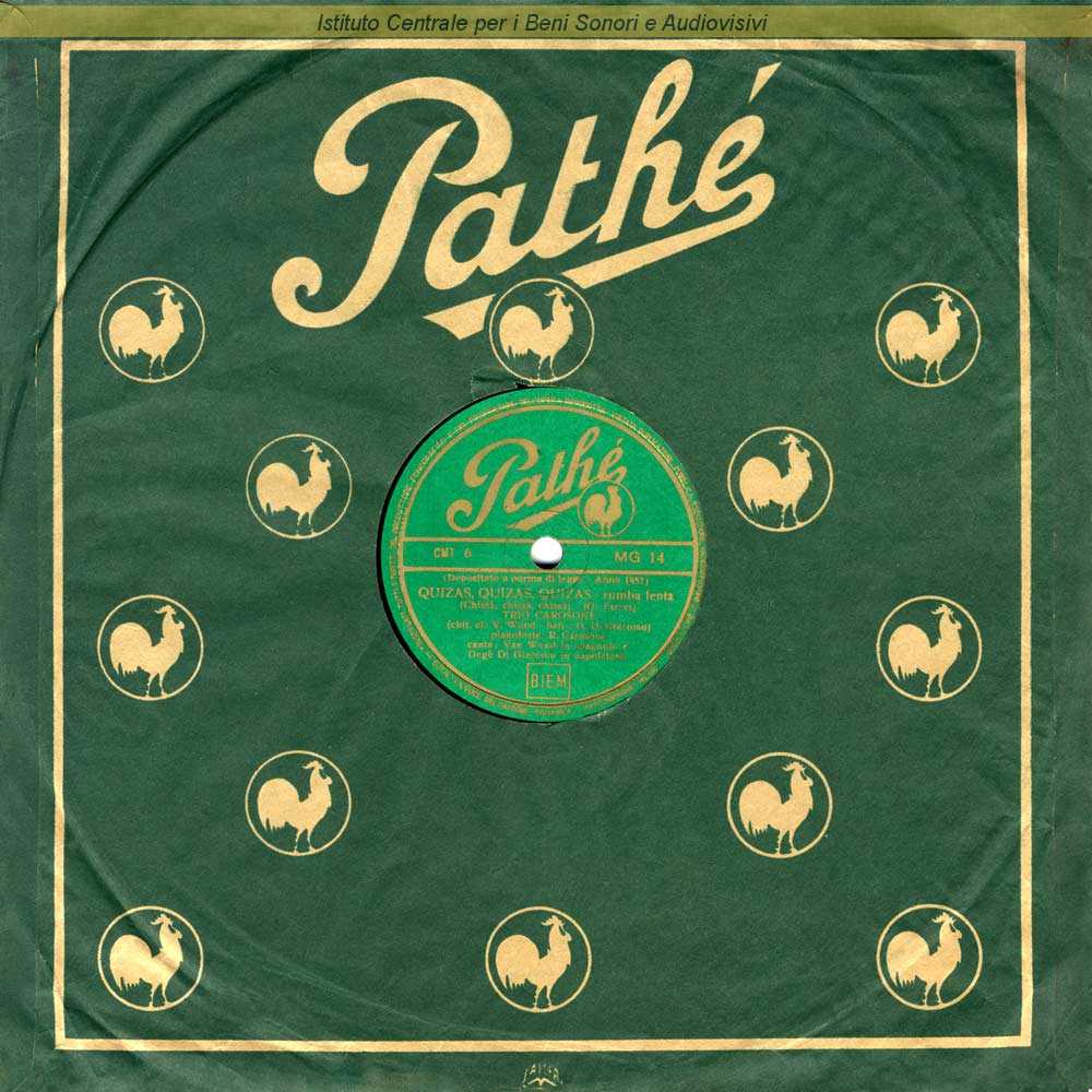 Note: Data matrici: 11 Gennaio / Inciso come Trio Carosone / "Quizas, quizas, quizas" è cantata in spagnolo e napoletano - "L'horloge de grand mere" è cantata in francese / Formazione: Renato Carosone, pianoforte; Gegè Di Giacomo, batteria; Peter Van Wood, chitarra elettrica