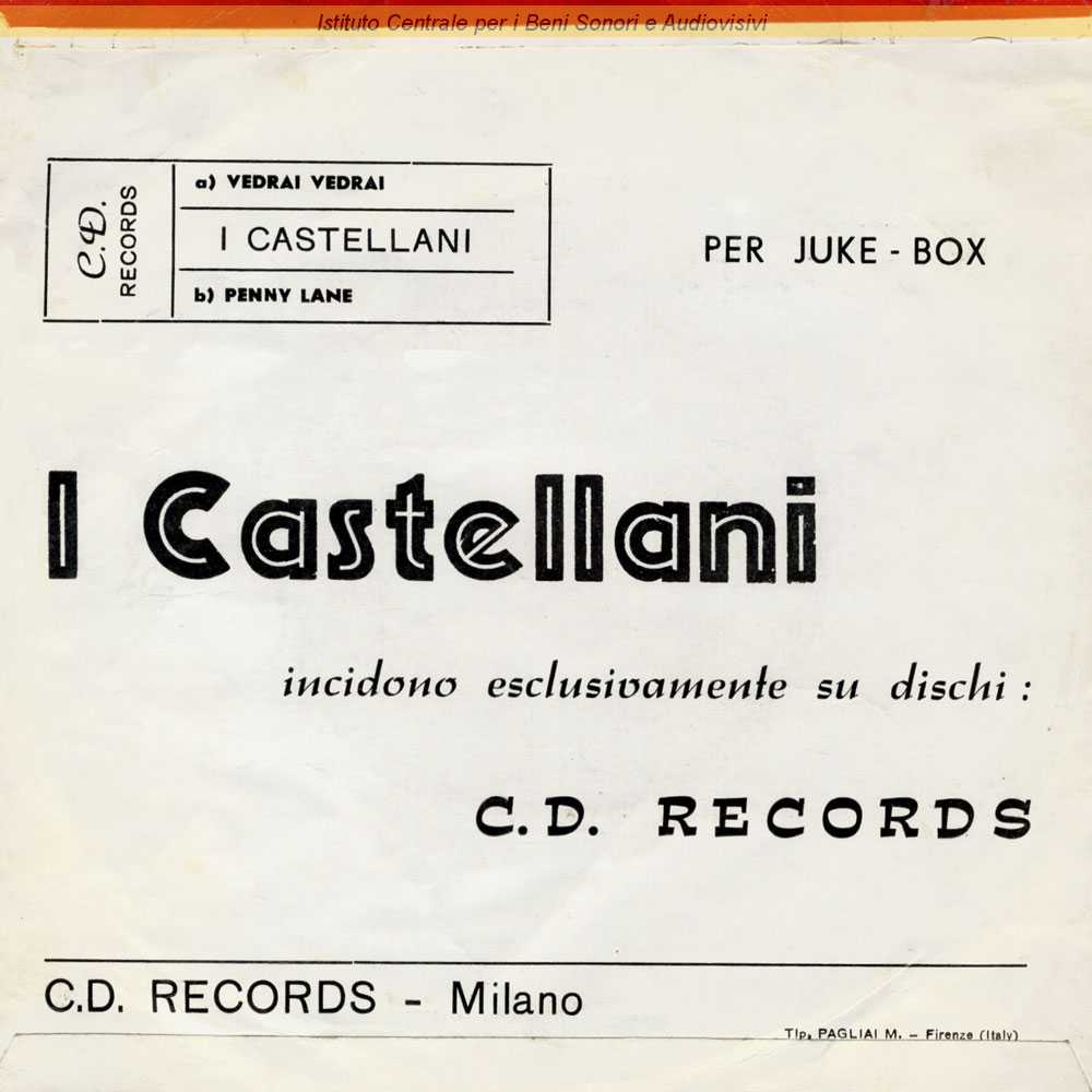 : Data matrici: 9 Maggio / Il retro di copertina riporta il tagliando da inserire nel juke-box con l'indicazione, per il lato B, di "Penny Lane", che in realtà era il lato B del singolo precedente dei Castellani