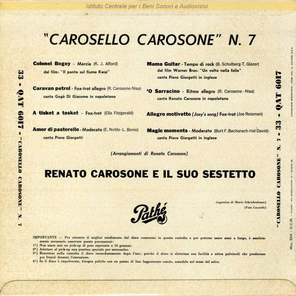 Autori: Tom Glazer, Budd Schulberg Musicisti: Piero Giorgetti (voce solista)