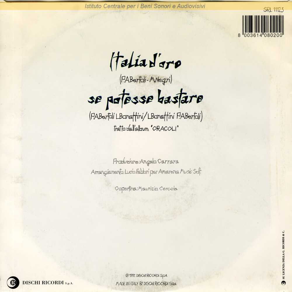 : Lato A: "Festival di San Remo 1992" / Copertina di Maurizio Cercola / Distribuito da Dischi Ricordi - Milano