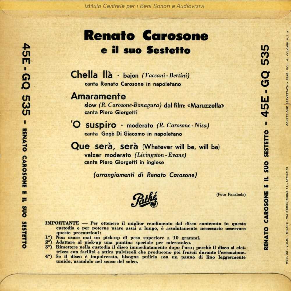 Autori: Enzo Bonagura, Renato Carosone Musicisti: Piero Giorgetti (voce solista)