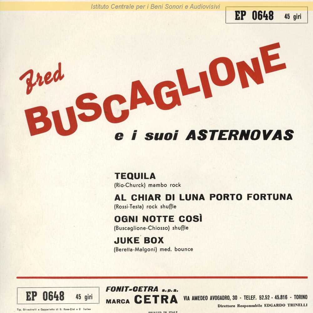 : Inciso come Fred Buscaglione e i suoi Asternovas / Data matrici: 9 Settembre / Copertina di Bertola / Distribuito da Cetra - Torino