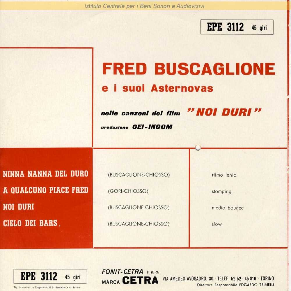: Data matrici: 1 Febbraio / Inciso come Fred Buscaglione e i suoi Asternovas / Canzoni dal film "Noi duri" (Camillo Mastrocinque, 1960) / Distribuito da Cetra - Torino