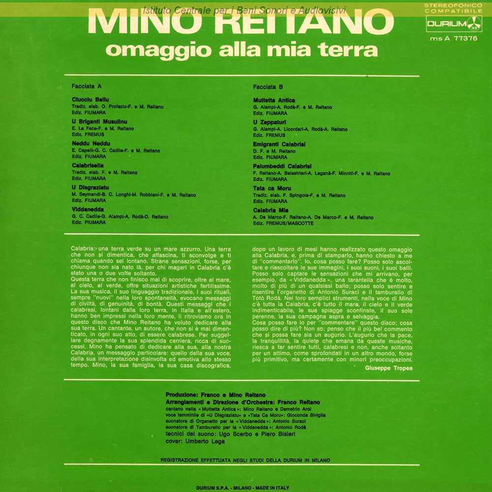 Autori: Otello Ermanno Profazio, Mino Reitano, Franco Reitano, tradizionale Edizioni: Fiumara