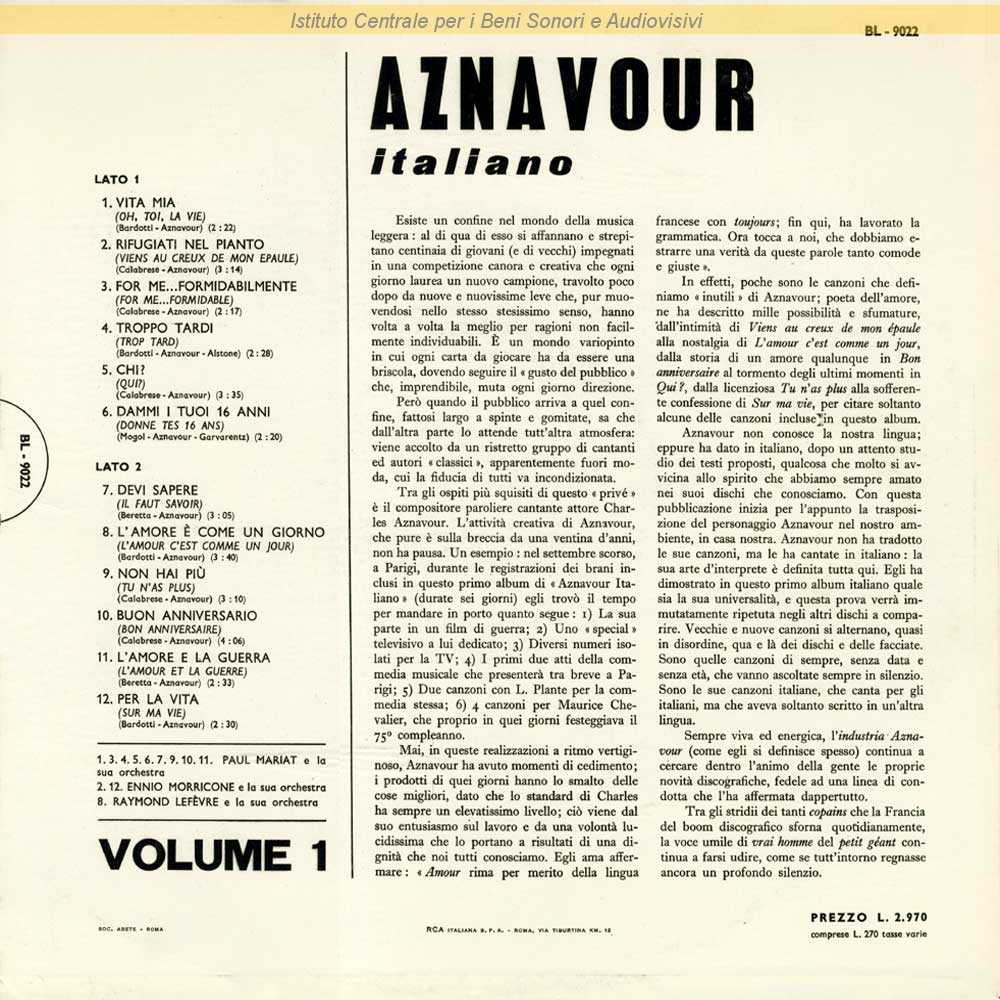 Autori: Charles Aznavour, Giorgio Calabrese Orchestra: Ennio Morricone