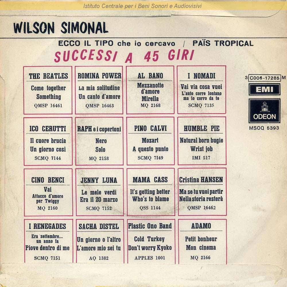Note: Data matrici: 15 Febbraio / Come numero supplementare di catalogo compare anche 3C006-17285 M / Ninotristano e Pontiack sono gli pseudonimi rispettivamente di Nino Pirito e Mansueto De Ponti / Distribuito da EMI Italiana - Caronno Pertusella (Varese)