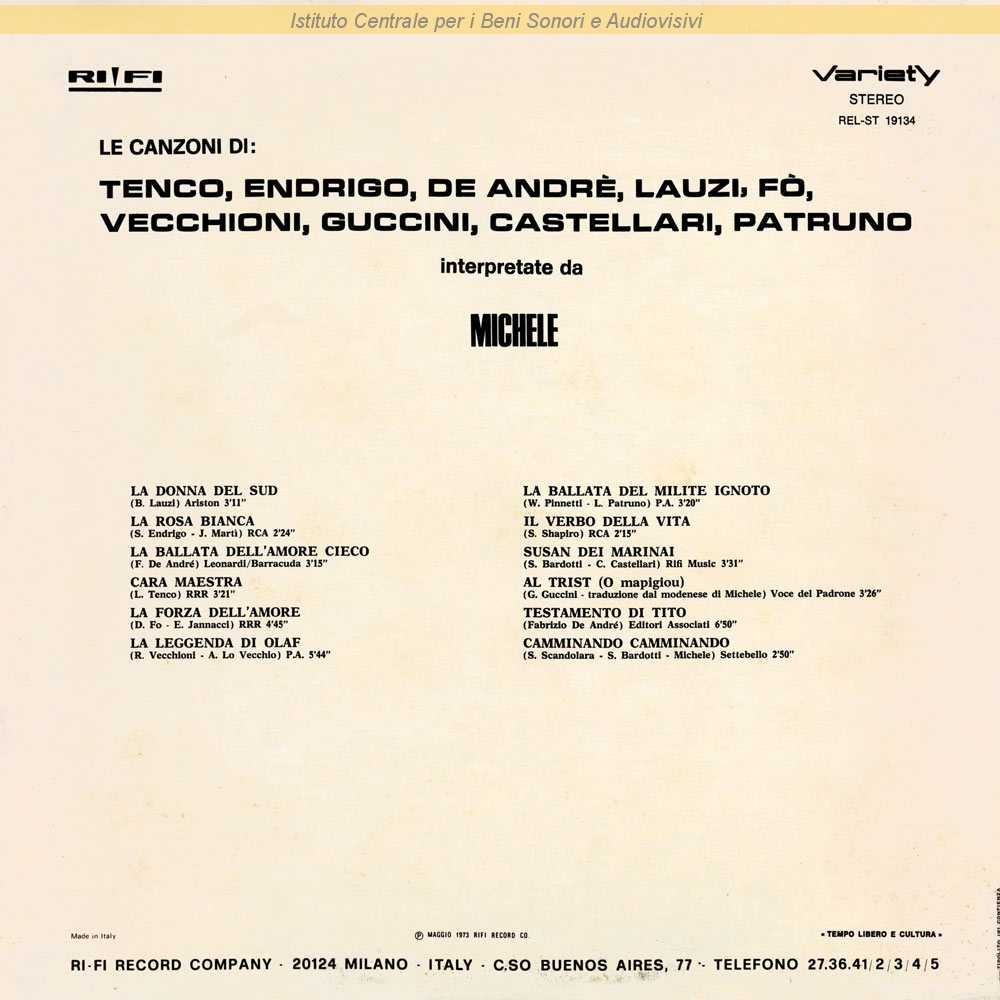 Autori: Francesco Guccini, Michele Edizioni: Voce del Padrone