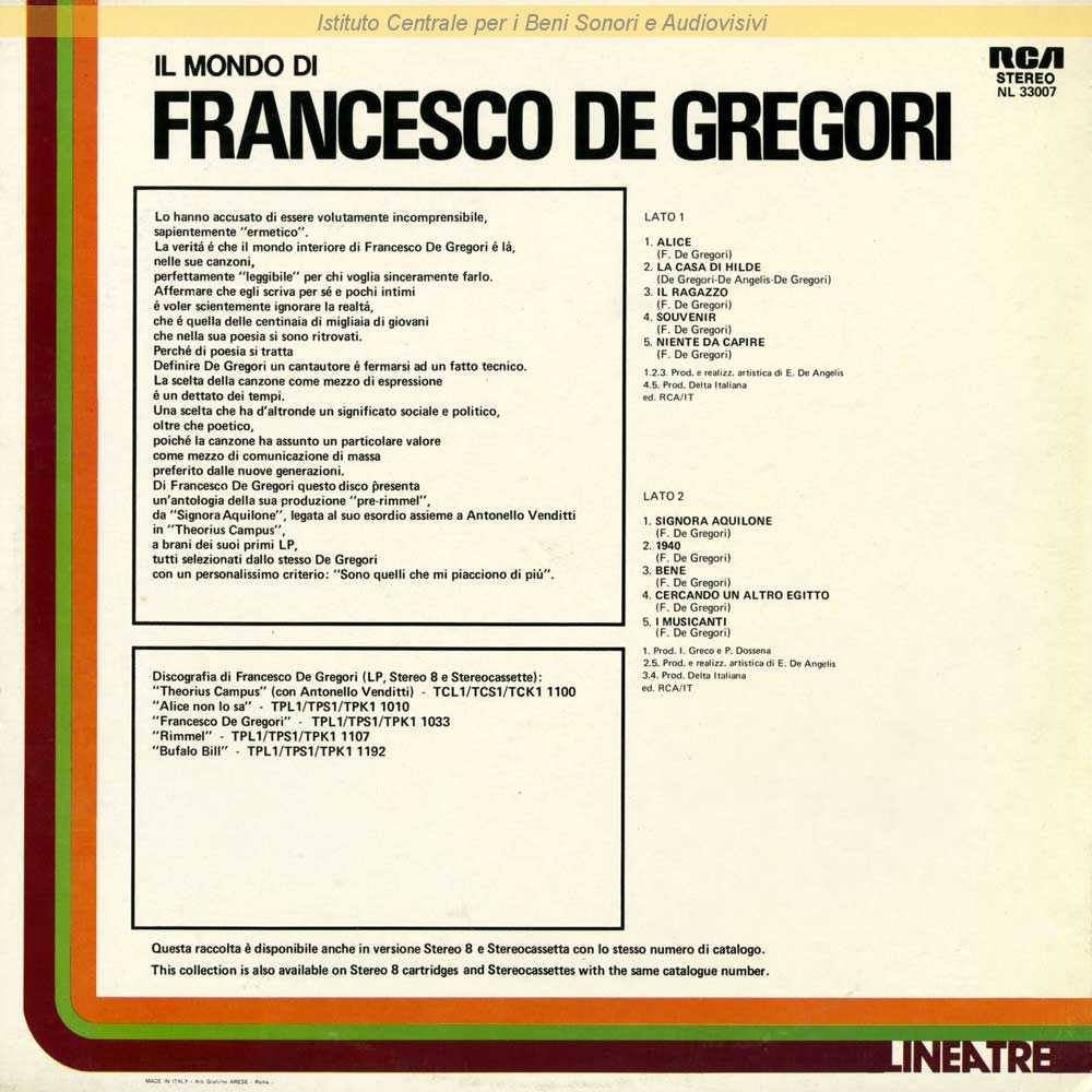 Autori: Francesco De Gregori Produttori: Delta Italiana