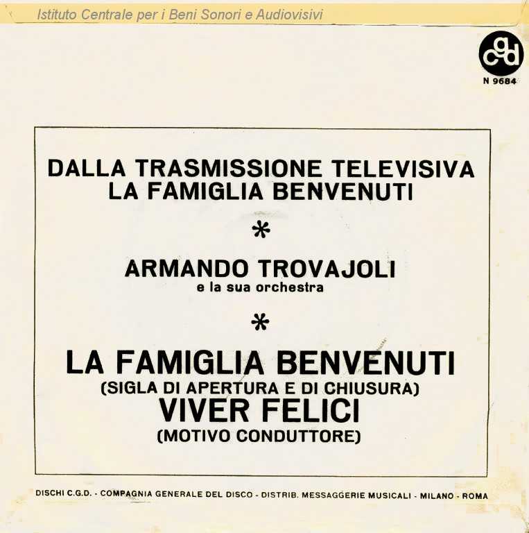 : Ambedue i brani dallo sceneggiato tv "La famiglia Benvenuti" (Alfredo Giannetti, 1968) / Distribuito da Messaggerie Musicali - Milano