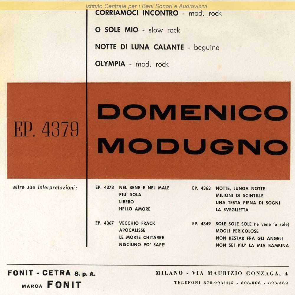 Autori: Vinicio Garavaglia, Domenico Modugno Orchestra: Nello Ciangherotti