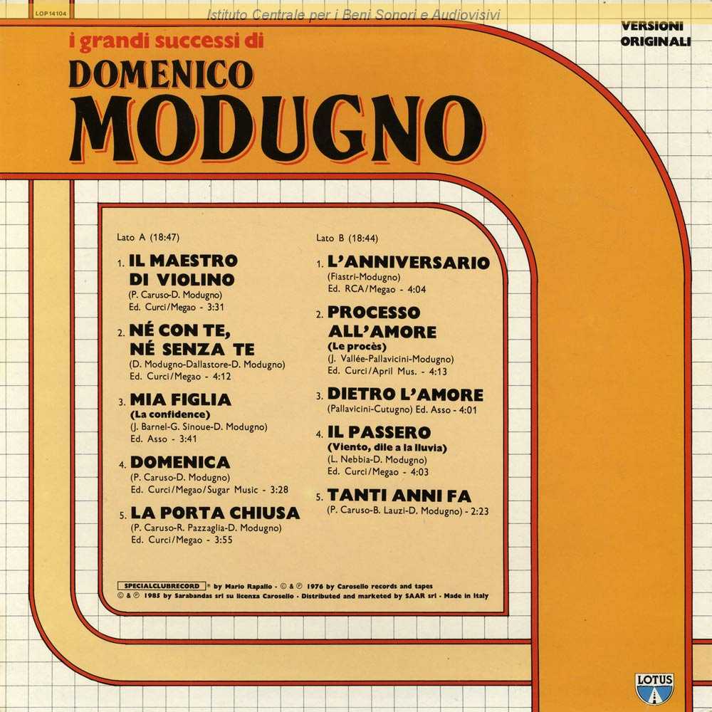 Autori: Iaia Fiastri, Domenico Modugno Edizioni: RCA , Megao