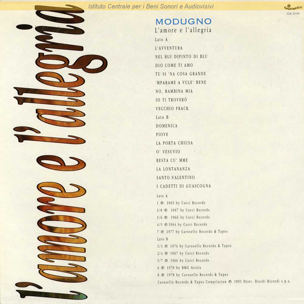 Autori: Enrica Bonaccorti, Domenico Modugno Edizioni: BMG Ariola , Megao