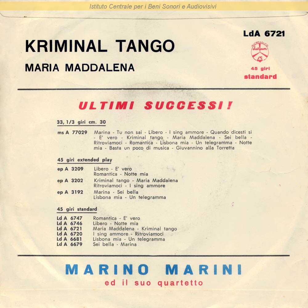 : Data matrici: 7 Dicembre / Inciso come Marino Marini e il suo quartetto / Pinchi è lo pseudonimo di Giuseppe Perotti