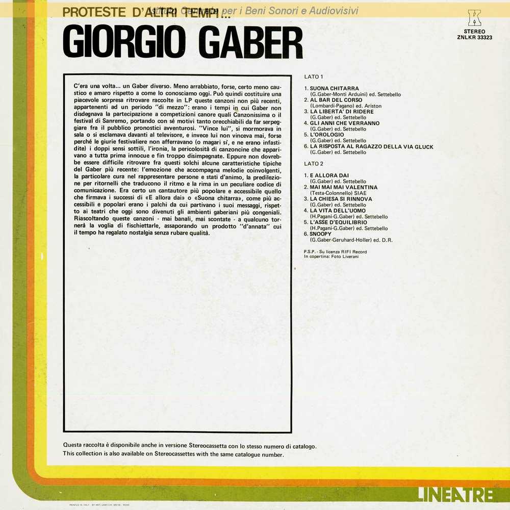 Autori: Giorgio Gaber, Herbert Pagani Edizioni: Settebello