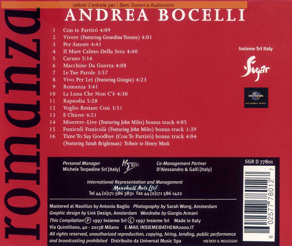 Interpreti: Andrea Bocelli, Gerardina Trovato Autori: Angelo Anastasio, Gerardina Trovato, Celso Valli Edizioni: Insieme , Impatto