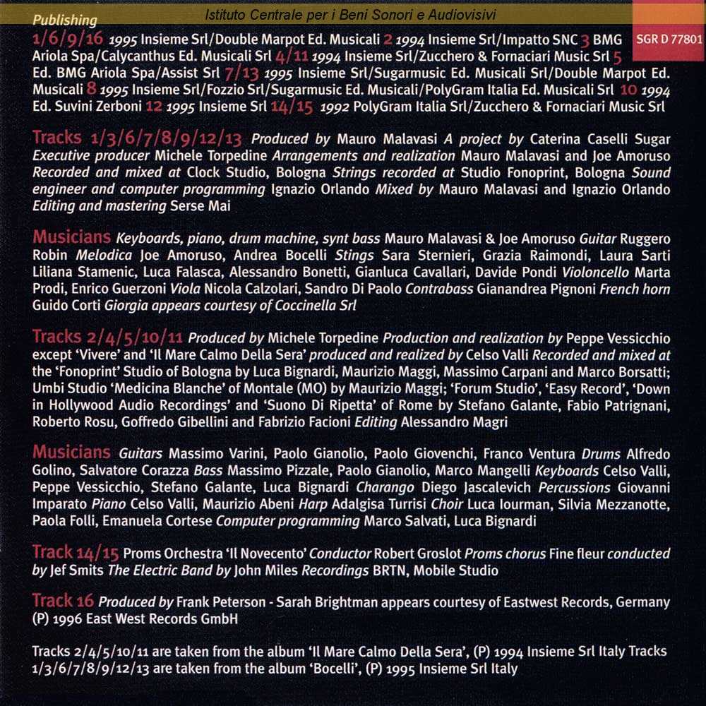 Interpreti: Andrea Bocelli, John Miles Autori: Bono, Zucchero Musicisti: Robert Groslot (direzione orchestra) , Proms Chorus Fine fleur (coro) , Proms Orchestra Il Novecento (tutti gli strumenti d'orchestra) , Jef Smits (direzione coro) Edizioni: Polygram Italia , Zucchero & Fornaciari Music