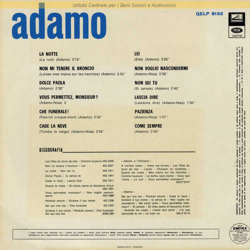 Autori: Adamo, Nisa Musicisti: Coro (coro) Orchestra: Angelo Giacomazzi