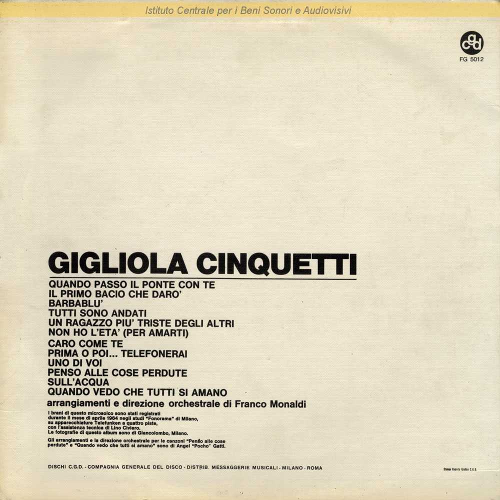 Autori: Oronzo Leuzzi, Francesco Specchia Arrangiatori: Angel "Pocho" Gatti Orchestra: Angel "Pocho" Gatti