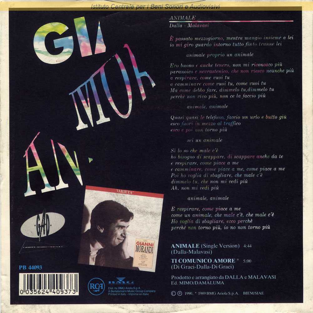 : "Animale" in versione diversa da quella contenuta nell'album "Varietà" / Distribuito da BMG Ariola - Roma