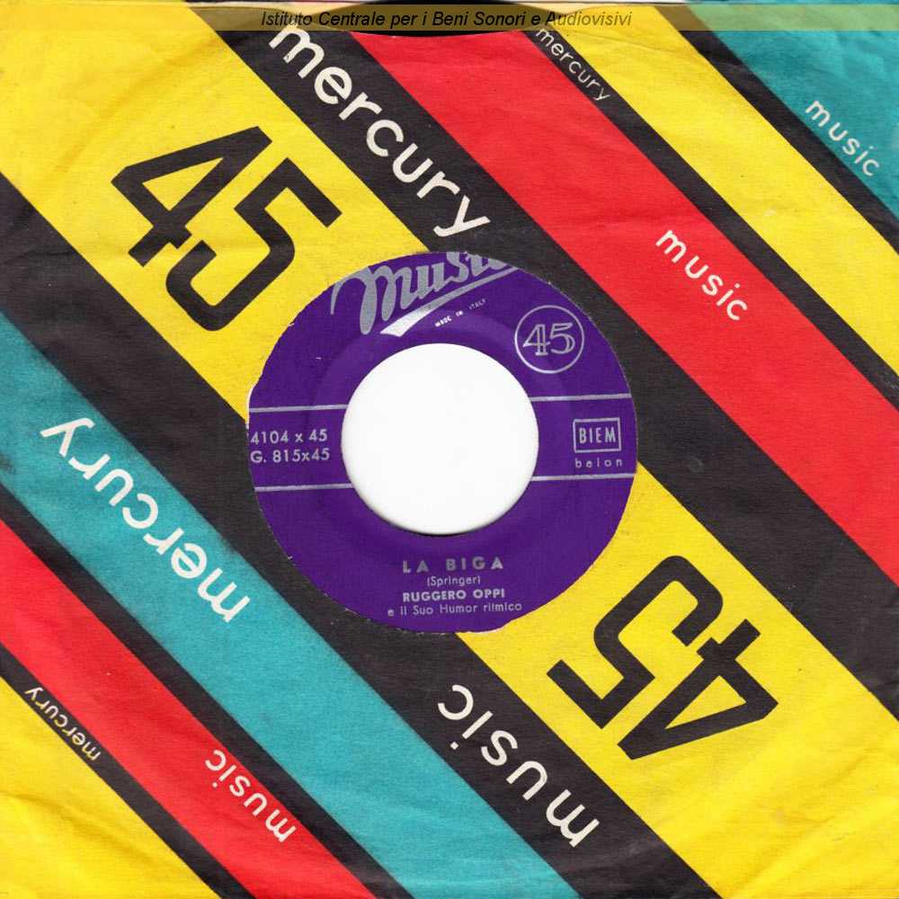 Note: Lidianni e Gabba sono gli pseudonimi rispettivamente di Gian Carlo Testoni e di Gaspare Gabriele Abbate / Sull'etichetta non sono riportati i nomi degli autori del testo di "La biga" ma solo quello dell'autore della musica / Inciso come Ruggero Oppi e il suo Humor ritmico