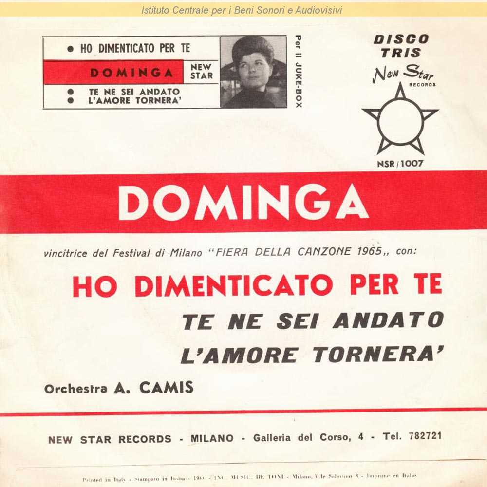 : Data matrici: 12 febbraio / "Ho dimenticato per te" vincitrice del Festival di Milano "Fiera della canzone 1965"
